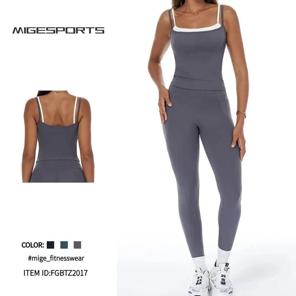 Ropa deportiva de yoga para mujer, conjunto de yoga, chaleco, leggings largos, FGBTZ3092